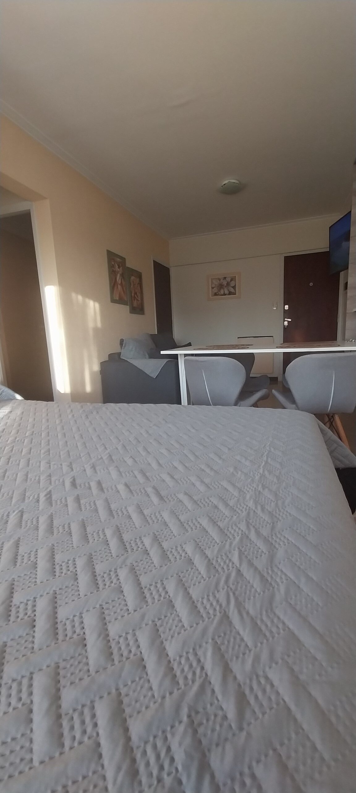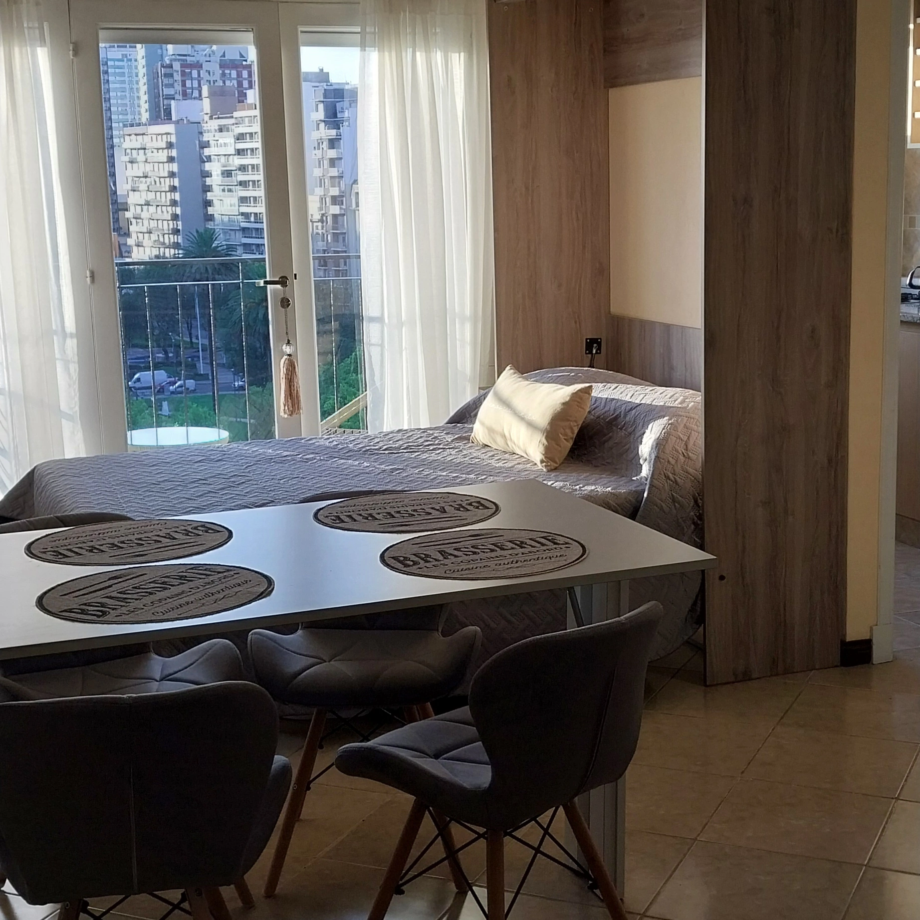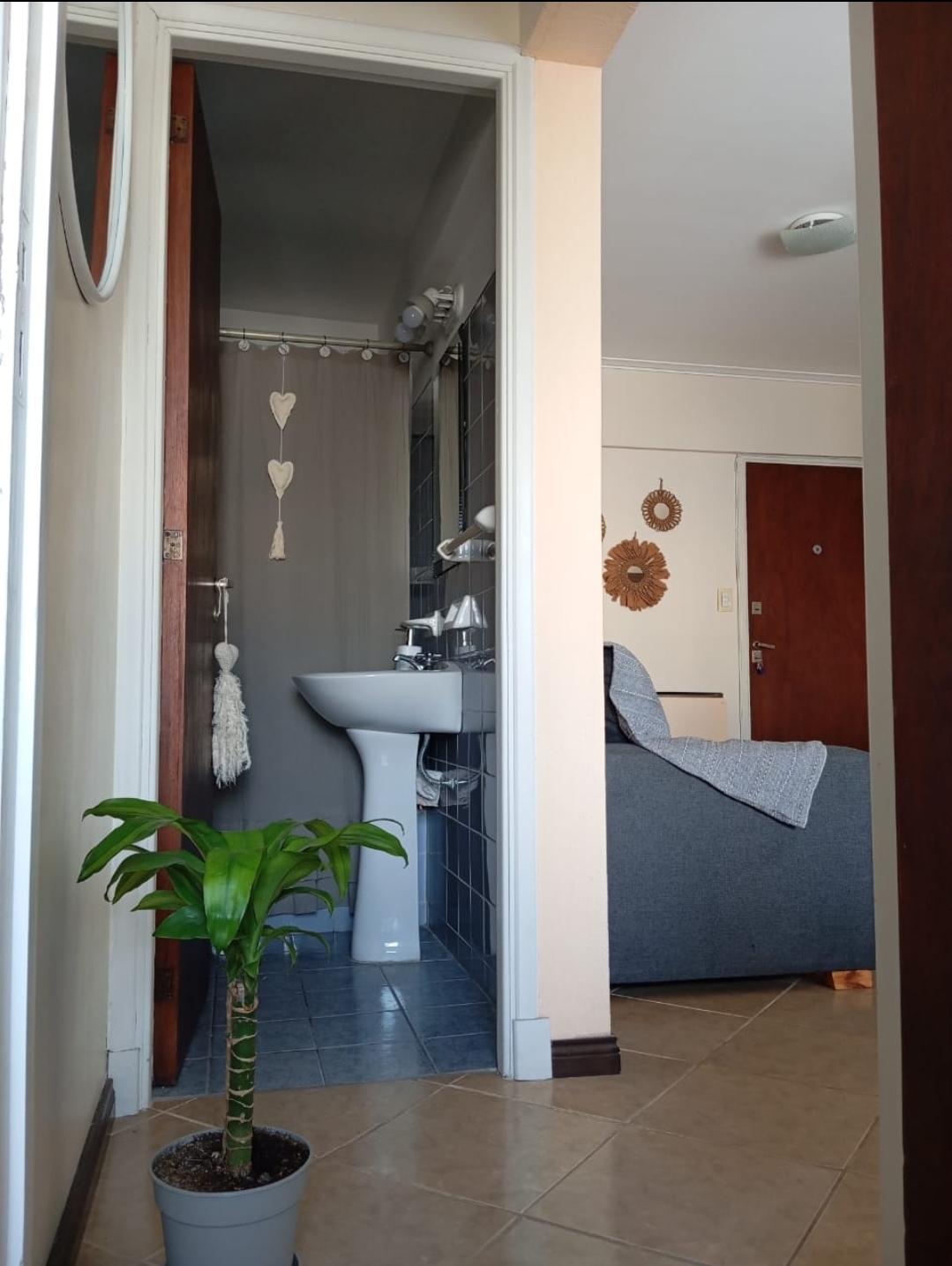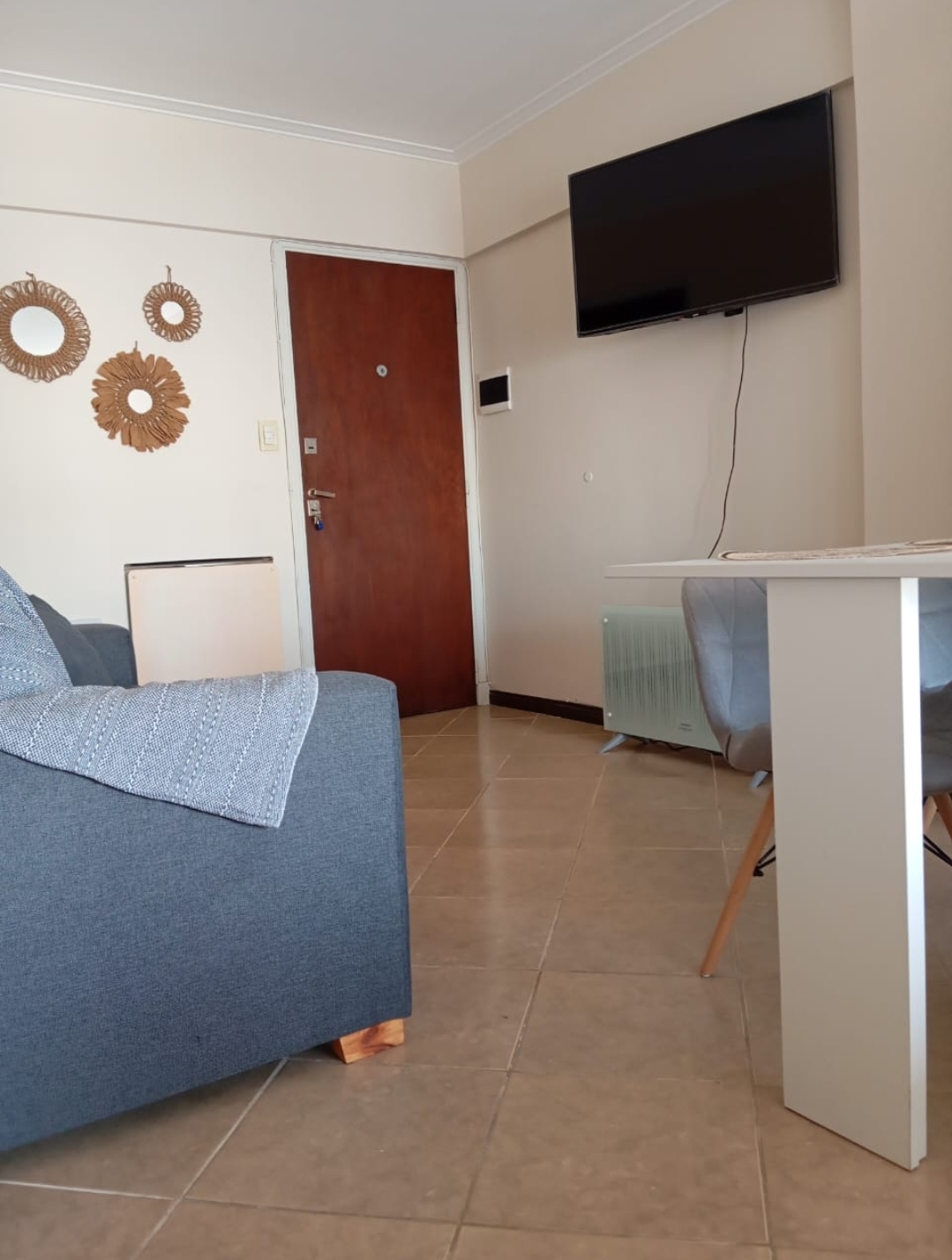📍Equipado con todo para que ya puedan ingresar hasta 3 personas (ideal 2 mayores y 1 menor). Cuenta con smart tv 43″, internet con Wifi de alta velocidad. Panel calefactor eléctrico. Combo 2 sillónes Asunción beige + Mesa c/ vidrio para Balcón. Plantas de exterior e interior.