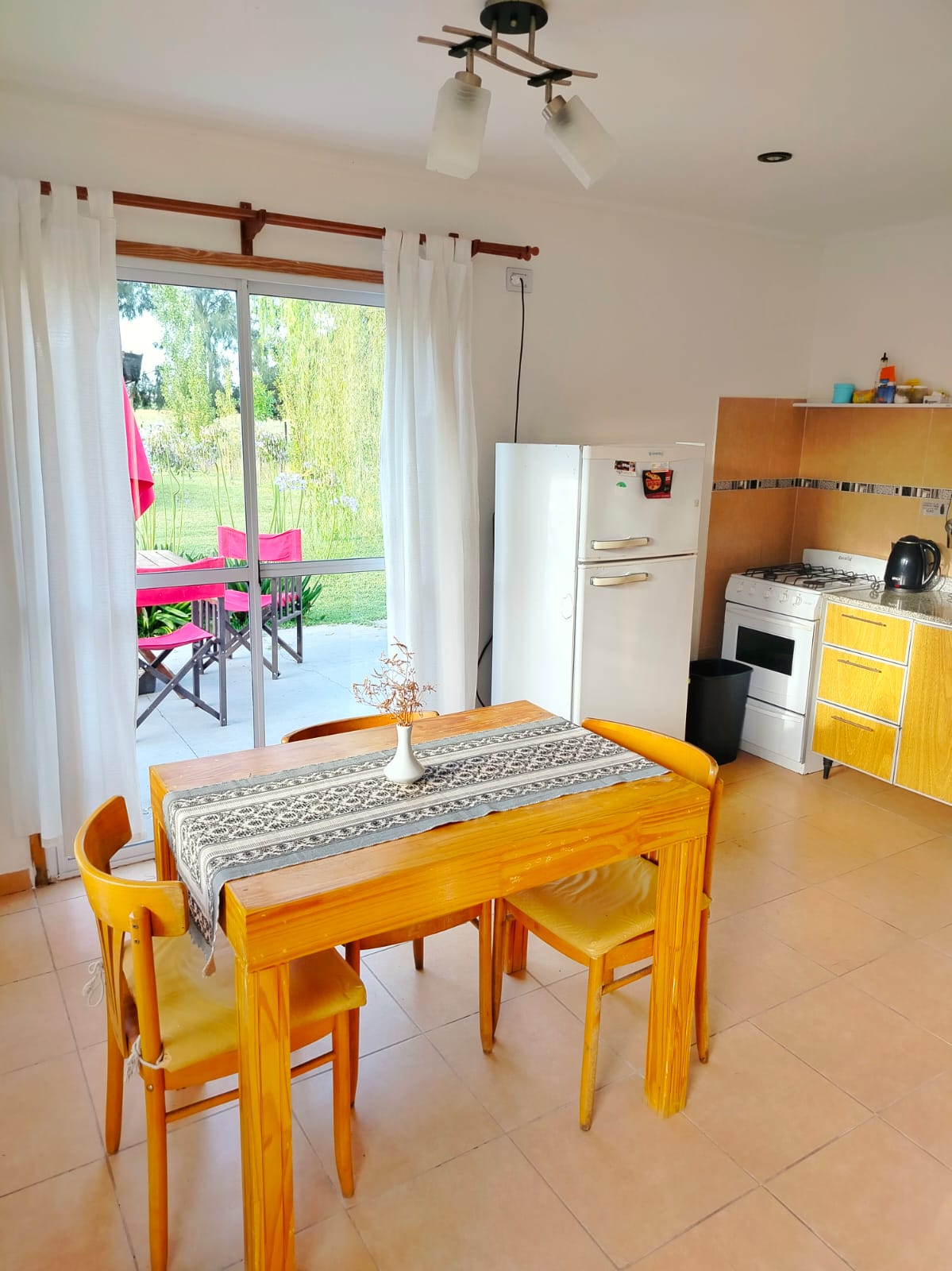 Incluye desayuno continental (opcional) Todas las mañanas podrá disfrutar de un riquísimo desayuno realizado en el momento por personal capacitado y utilizando materias primas de excelente calidad. Todos los servicios disponibles, cabañas totalmente equipadas con vajilla y ropa de cama y blanqueria. Ademas aire acondicionado frió calor y termotanque eléctrico de 80 litros para disfrutar de una placida ducha con agua bien caliente. Cada unidad cuenta con TV con direcTV y servicio de Wifi para ver una linda película o algún partido de su equipo favorito. Cada unidad posee parrilla individual, con leña y todo preparado para que pueda disfrutar de un rico asado. También puede disfrutar del quincho con mesas y parrilla, que ademas tiene baño para su comodidad. El amplio parque cuenta con cancha de futbol, mesas, arboles y plantas orgnamentales y frutales. A su llegada puede dejar el auto en la cochera cubierta para su tranquilidad. Amplia pileta con solárium para disfrutar de un rico baño. También disfrutar del sol en compañía de alguna novela con final feliz.