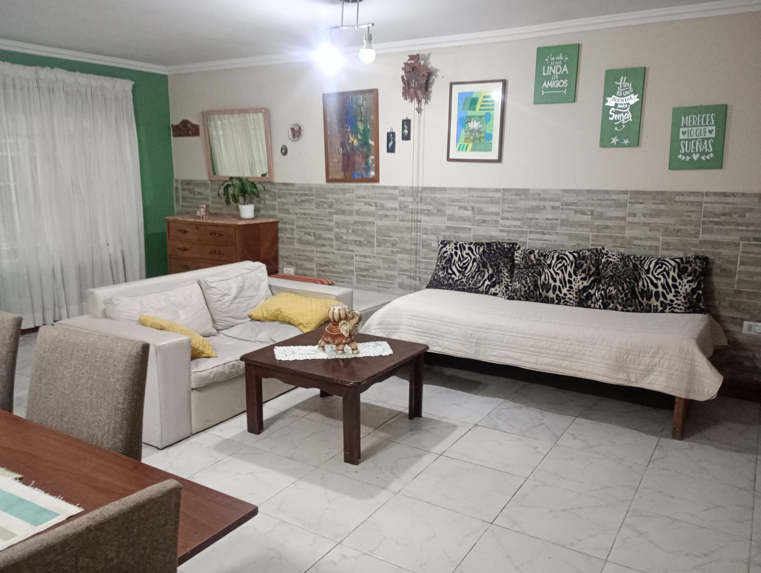 Casa zona centro Necochea para 6 personas cómodas. Wifi, TV con plataformas de entretenimiento, living, comedor, cocina amplia, baño y 2 habitaciones. Totalmente equipada, heladera con freezer, microondas, a 7 minutos de la playa y a 6 cuadras del centro, sobre importante avenida muy luminosa. Se puede estacionar en la vereda, no se cobra estacionamiento en la zona. Barrio seguro con locales comerciales.