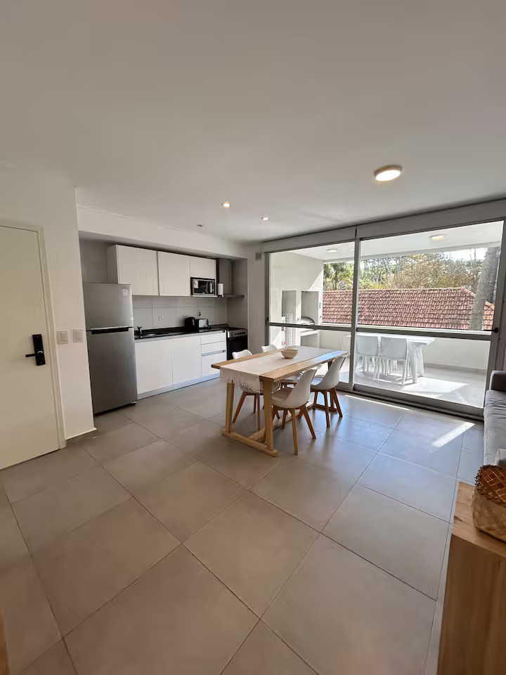 Departamento de 93m2 Ubicado en 1° piso, vista lateral, cuenta con cocina completa, horno, vajilla base, microondas, pava eléctrica, tostadora, wifi privado, TV LCD, área de living comedor, baño con ducha, dormitorio matrimonial, Posiblidad de cama adicional para 3 pasajero. balcon con parrilla grill a gas.