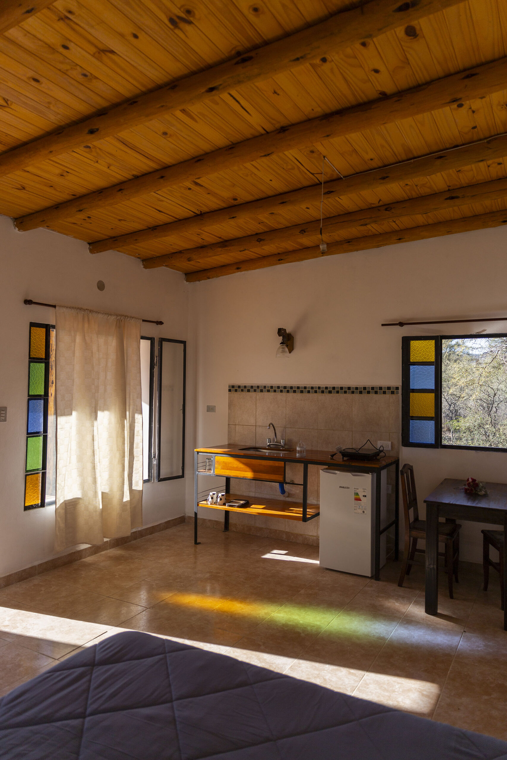 Sus grandes ventanales hace que el monte nativo se introduzca dentro la cabaña. Es un lugar ideal para descansar, hacer caminatas, avistaje de aves y pasear.