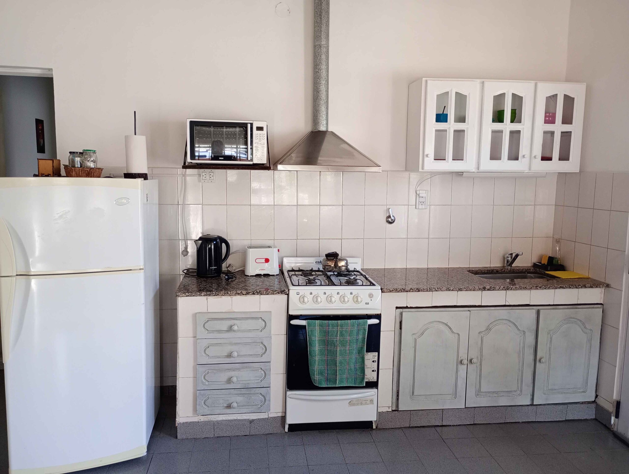 Cuenta con cafetera, tostadora, microondas, freezer, vajilla completa, TV digital. Aire Acondicionado