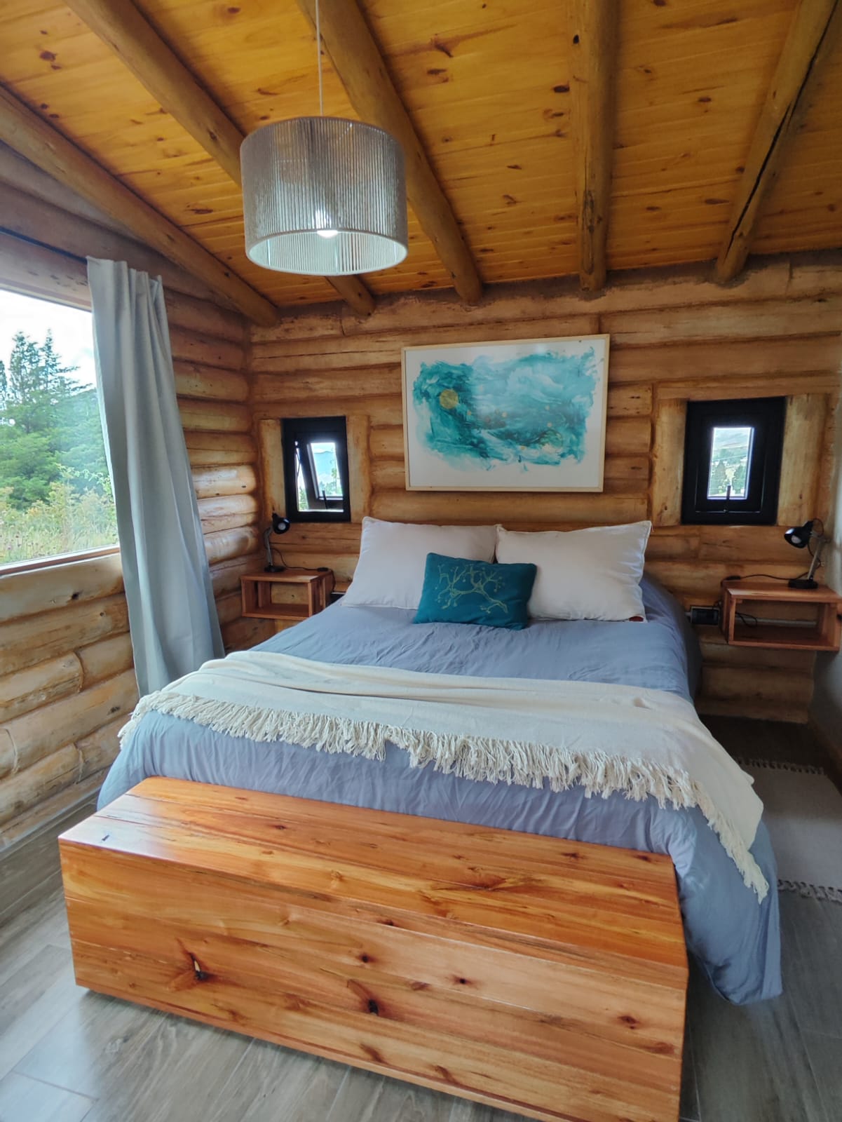 * Habitación con cama Queen y dos camas individuales en el estar.