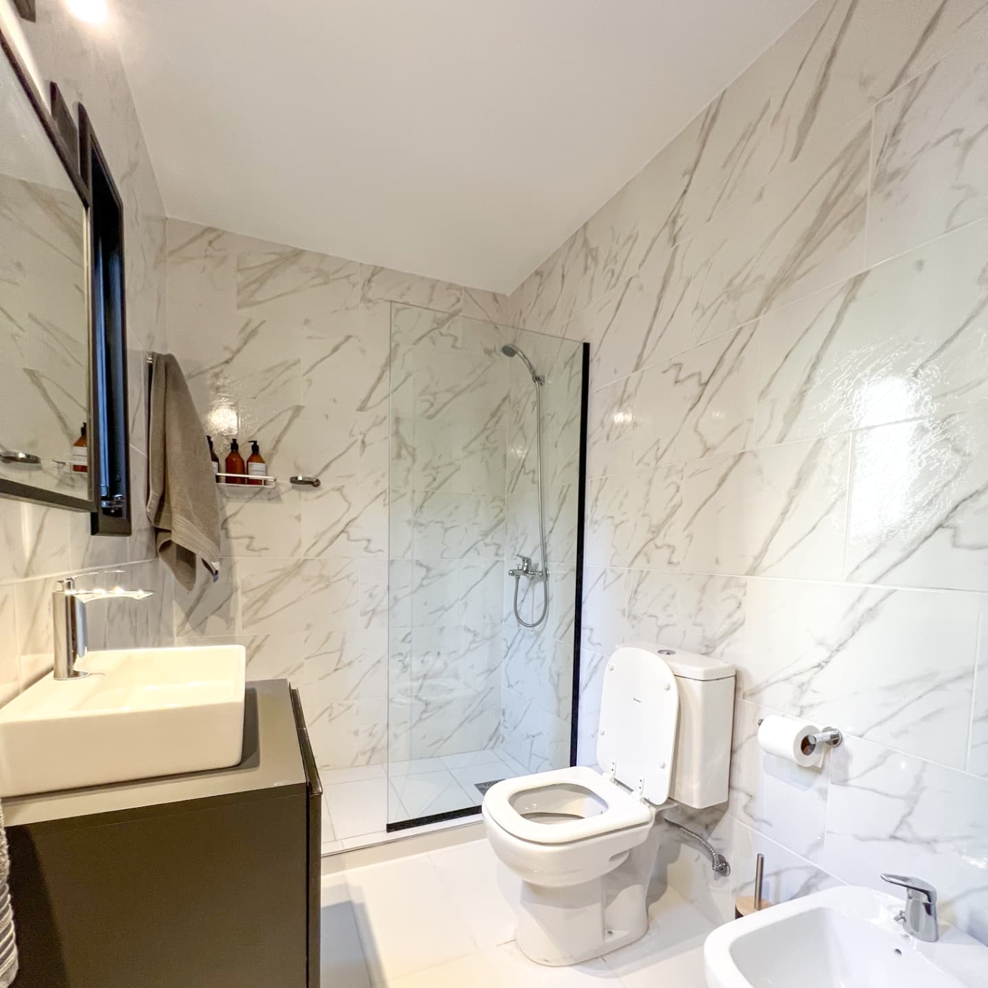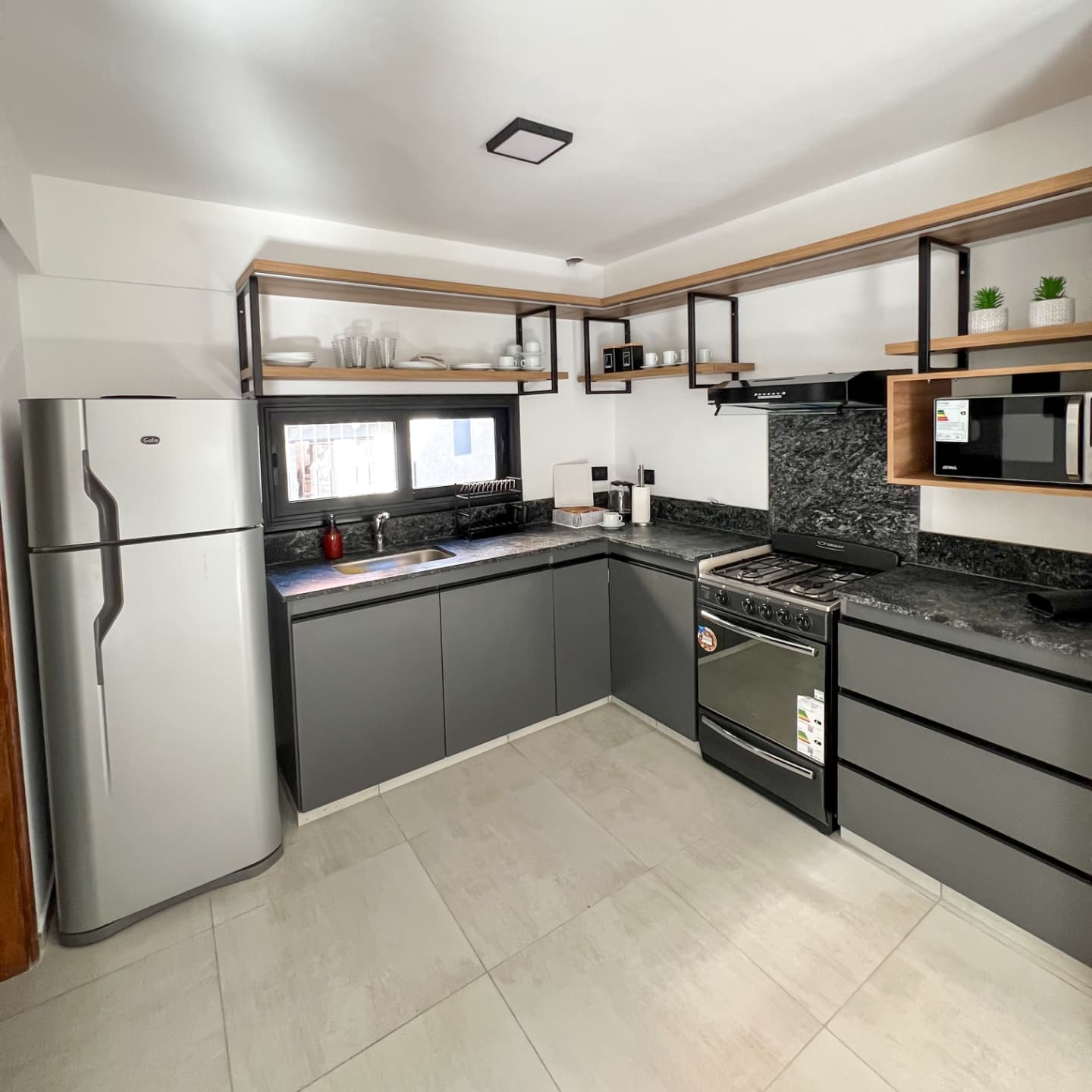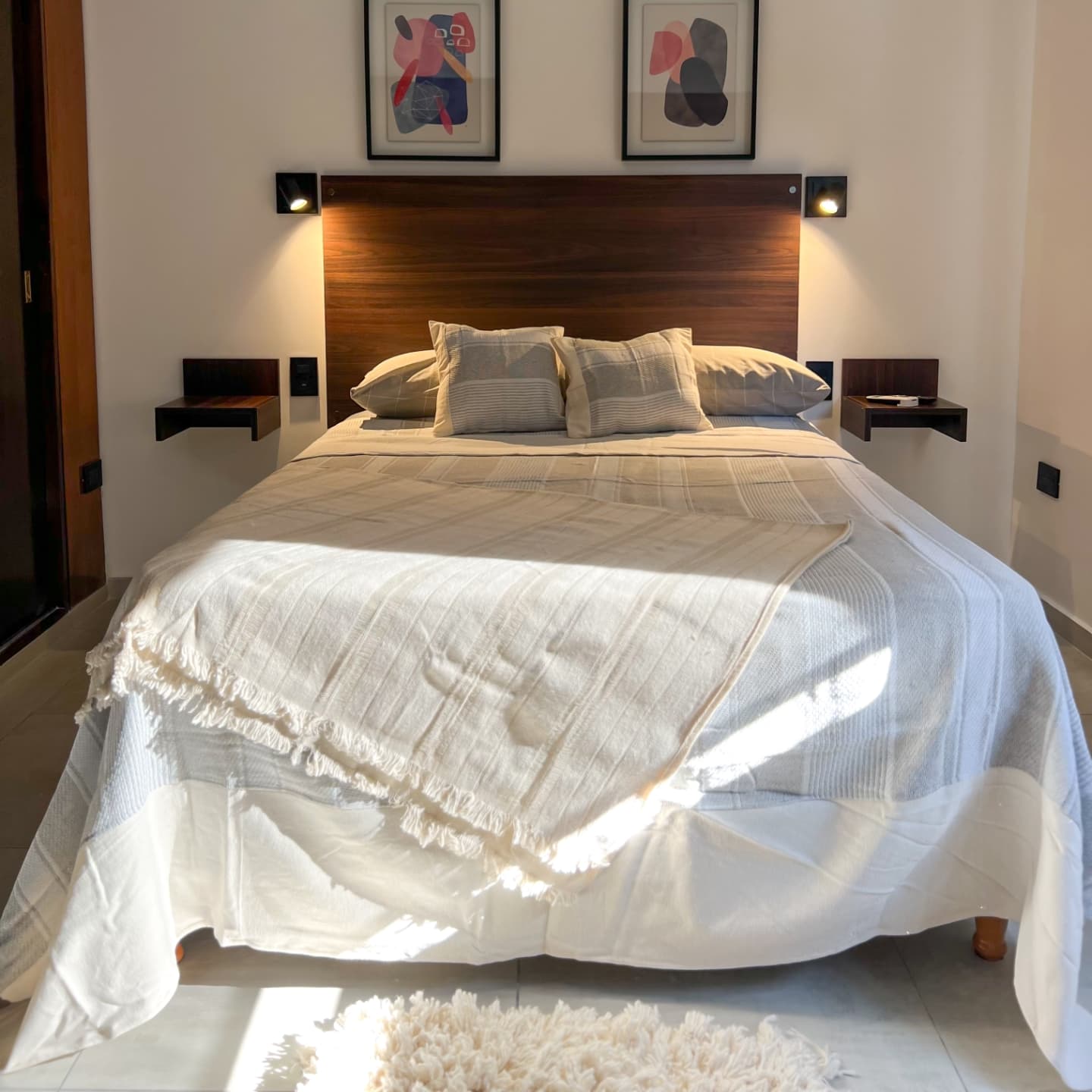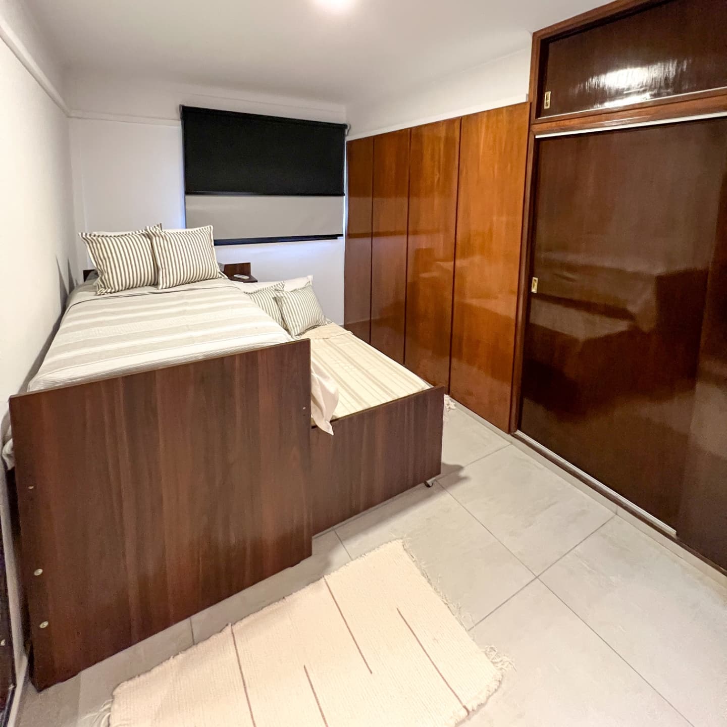 Piso completo de 105mts2. Consta de 3 habitaciones, 2 con cama matrimonial y otra con 2 camas marineras. Tiene 2 baños, uno en suite El departamento está en 2 piso por escaleras